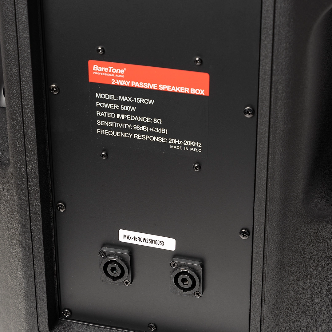 اسپیکر BareTone مدل MAX15RAE به یک تقویتکننده داخلی با توان 300 وات مجهز شده که توانایی ارائه صدای پرقدرت، خروجی تمیز و حجم بالایی از باس را دارد. این میزان توان برای سالنهای متوسط، مراسم، کلاسهای آموزشی شلوغ، محیطهای باز و اجرای زنده کوچک کاملاً مناسب است.